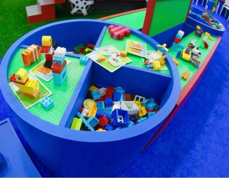Área Lego© Espaço para brincadeiras com diversas opções de bloquinhos Lego Duplo© e Lego Junior©. Brinque com fazendinha, casinha da Minie©, com o castelo das princesas, trem do Mickey©, com os zoológicos, carrinhos, além das aventuras com Batman© e SuperMan©.