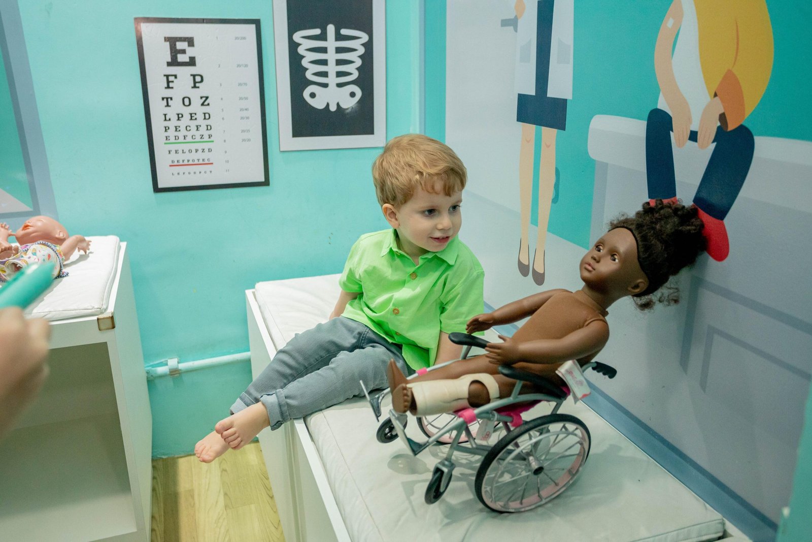 Ao longo do parque, as crianças deparam-se com simuladores de profissões. É só se vestir a caráter e entrar na brincadeira!